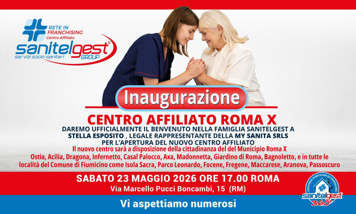 Roma, 23 maggio 2026 – La rete in Franchising Sanitelgest Società di “Assistenza Domiciliare e Ospedaliera” continua a crescere e annuncia l’inaugurazione del nuovo Centro Affiliato Roma X (RM) che entrerà ufficialmente a far parte del gruppo sabato 23 maggio alle ore 17.00.
